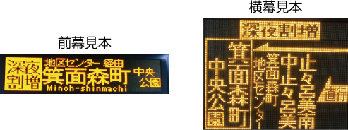 ・深夜バスの行先方向幕には「深夜割増」と表示しています。