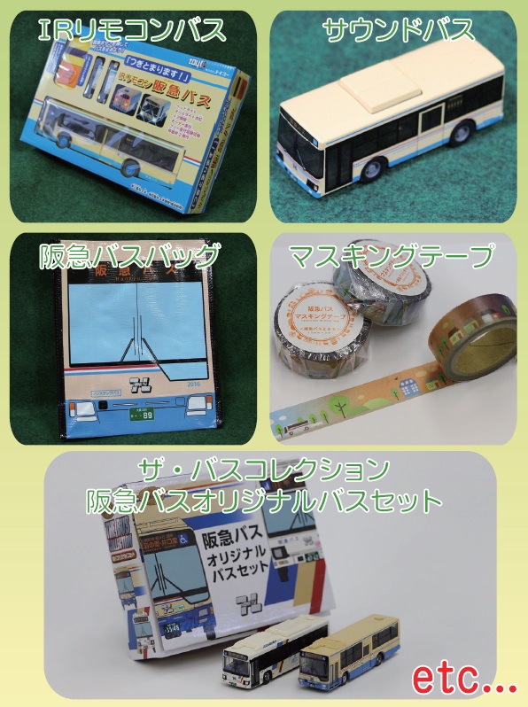定番の「IRリモコンバス」や「サウンドバス」、「阪急バスバッグ」や「マスキングテープ」などをはじめとした、多数のグッズを販売予定のほか、阪急バス創立90周年を記念して昨年製作した「ザ・バスコレクション 阪急バスオリジナルバスセット」も数量限定で販売させていただく予定です!!ほかに新グッズの販売もあるかもしれません♪