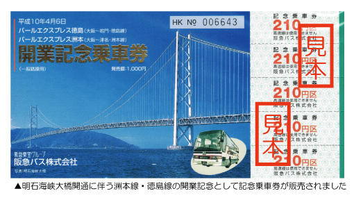 ●1998年(平成10年) 4月6日、前日(5日)の明石海峡大橋開通に伴い、大阪(梅田)から洲本間、大阪(梅田)から徳島間で昼行便の運行を開始。
