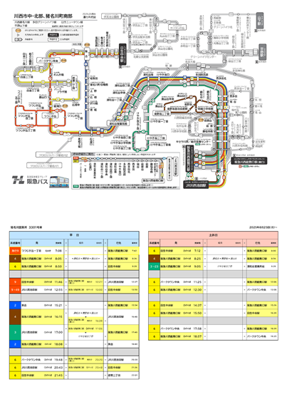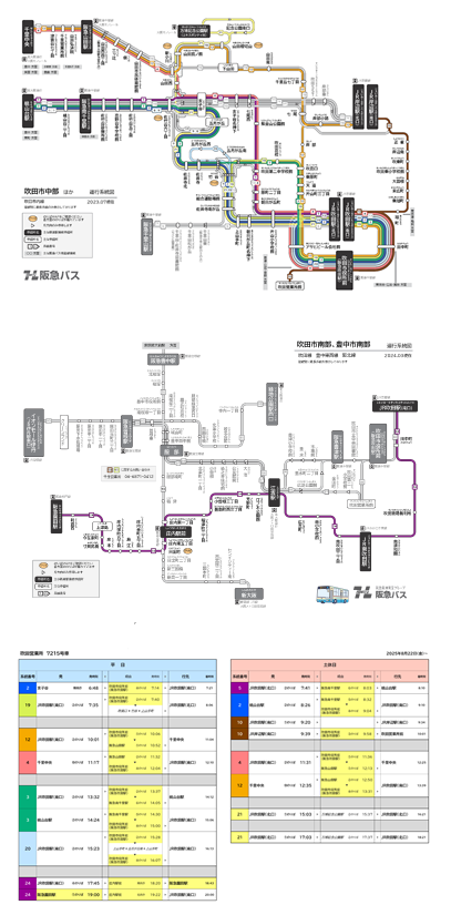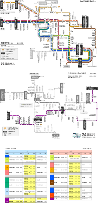 運行系統番号:2、3、4、12、19、20、24(吹田市役所前(阪急吹田駅)、阪急山田駅、阪急南千里駅、阪急庄内駅、阪急園田駅)