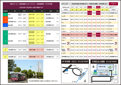 ※2025年11月29日(土)・30日(日)は万博鉄道まつり開催に伴い、7215号車を万博記念公園駅に乗り入れるダイヤで運行します。路線図・時刻表はこちら