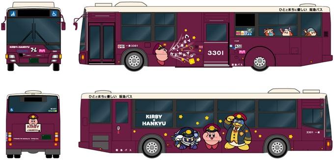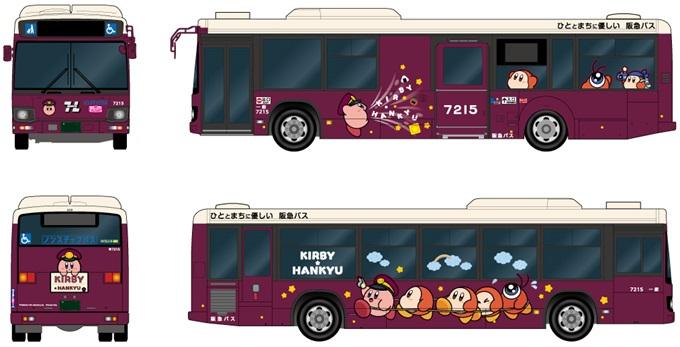 「星のカービィ×阪急電車」コラボレーション企画にあわせて、阪急バスでも阪急電車の駅と接続する2エリアで、計2台のラッピングバスを運行します♪