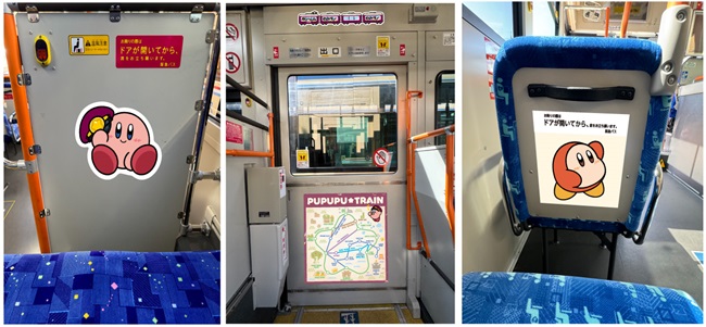 バス車内のさまざまな所で、「星のカービィ×阪急電車」コラボレーション企画のカービィたちが皆さまをお迎えします。ぜひご乗車いただき、車内でしか見られない装飾をお楽しみください。
