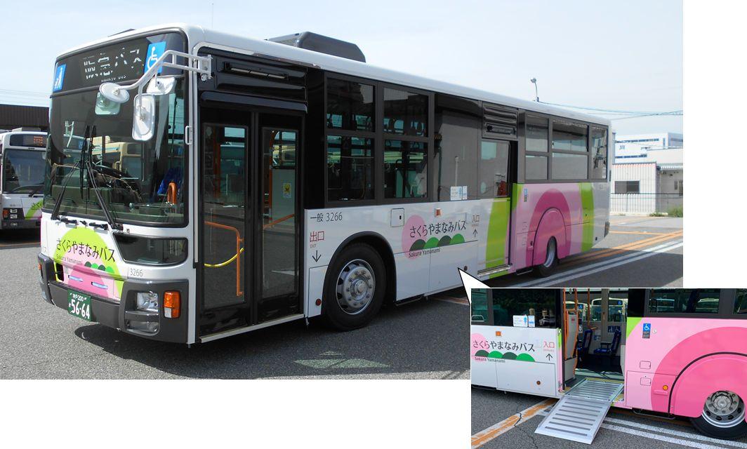 さくらやまなみバスでは2024年完了を目途に、ワンステップバスからノンステップバスへの車両更新を実施しております。
