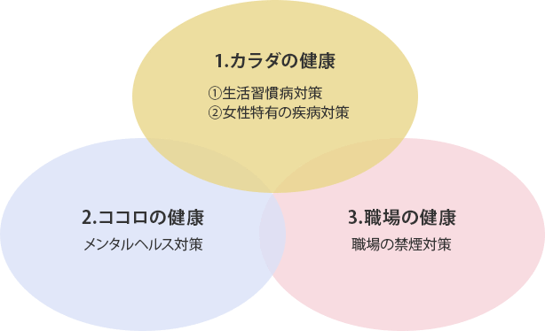 これを実現するために、私たちは自らの健康に高い意識を持ち、職場の仲間や家族とともに健康づくりに取り組みます。