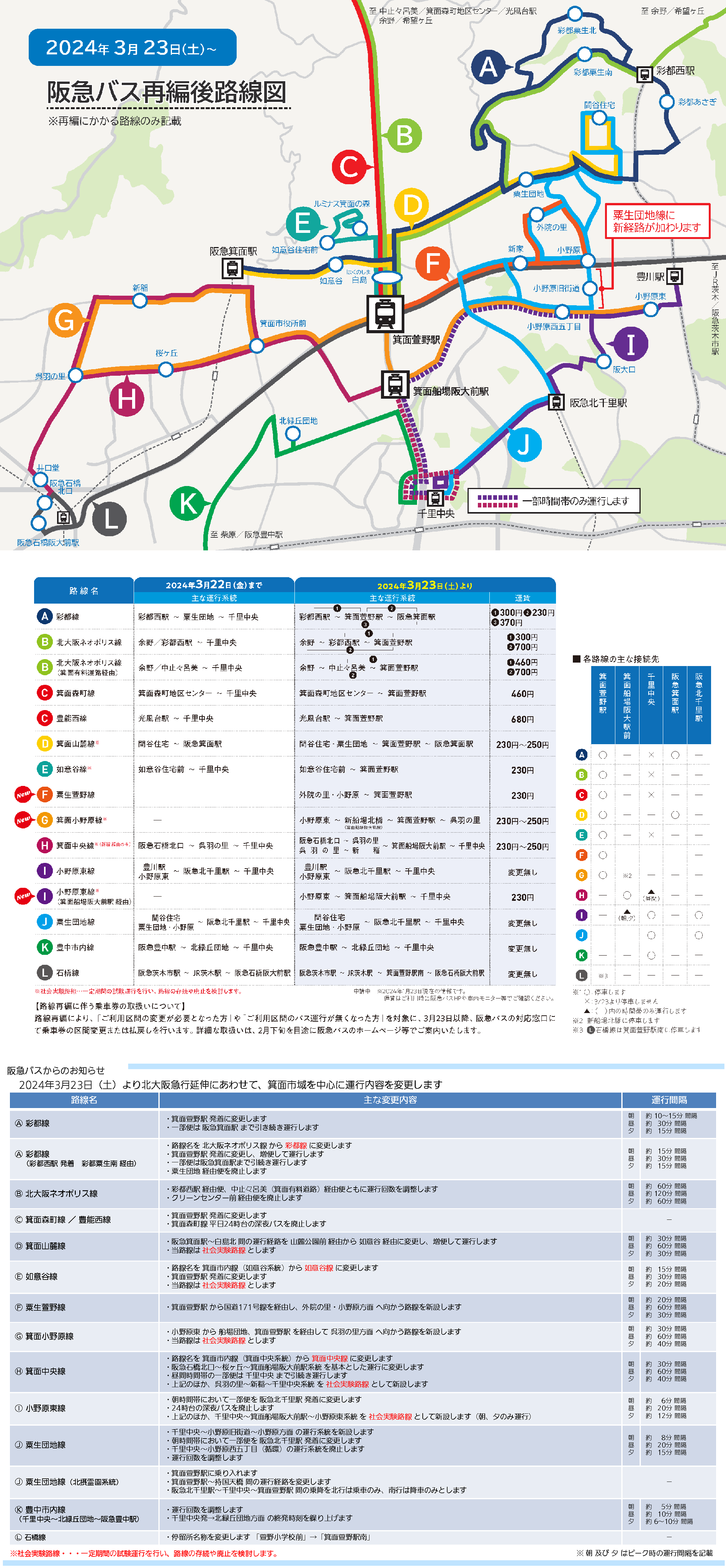 路線再編により、「ご利用区間の変更が必要となった方」や「ご利用区間のバス運行が無くなった方」を対象に、3月23日以降、阪急バスの対応窓口にて乗車券の区間変更または払戻しを行います。