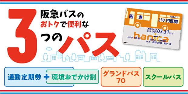 ベージュ&ブルーのカラーリングでおなじみの、阪急バスの路線バスには様々なタイプの車両が運行しています。代表的な車両は、「標準車両」「低公害車両」です。低公害車両はエネルギー消費を抑え、低燃費でクリーンな排気ガスになる人と地球環境に優しい車両です。白にカラーラインをあしらった新しいカラーリングを採用しています。