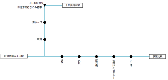 長岡京・淀線(JR長岡京駅~阪急西山天王山駅~京阪淀駅間)の阪急バス及び京都京阪バスが共通乗車できます。