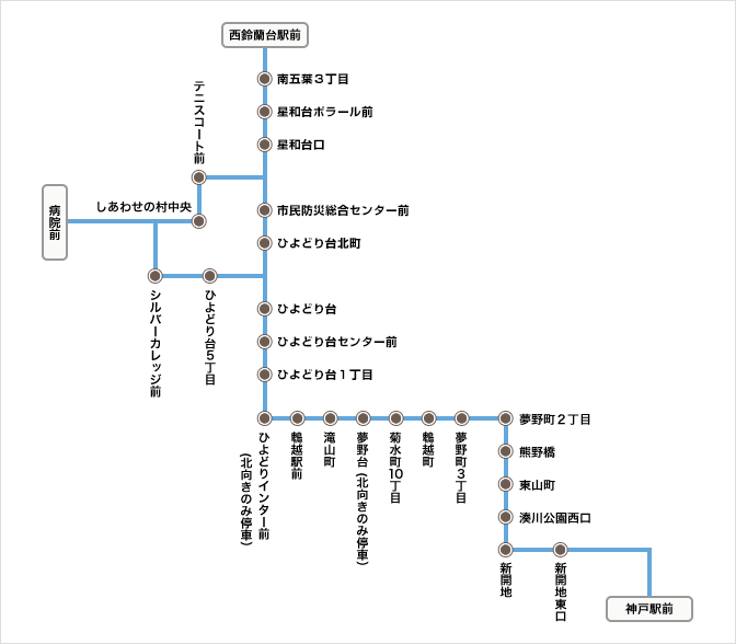 阪急観光バス梅田案内所(阪急三番街高速バスのりば前)、神戸電鉄総合案内所(鈴蘭台駅)、神戸市交通局神戸駅前定期券発売所