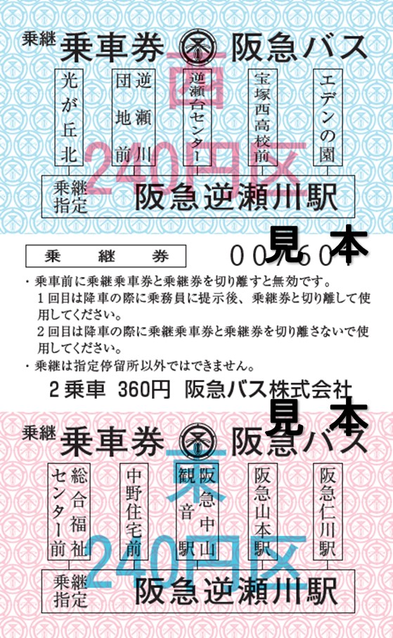 阪急逆瀬川駅以東と以西の特殊区間制1区間を乗り継ぐ際に使用できる乗継乗車券です。